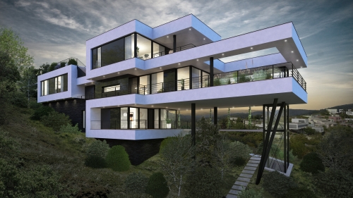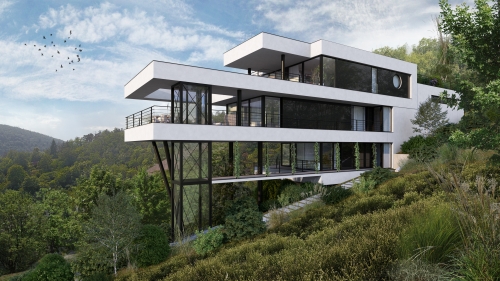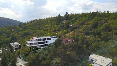 Vila je zasazena do jižního svahu v městské části Brno-Komín, ve slepé ulici, kterou obklopuje klidné prostředí. Současně poskytuje krásný výhled na protější kopce a lesy. Okolí vily doplňuje více podobných nastandardních projektů, které utvářejí lokalitu výjimečného bydlení.